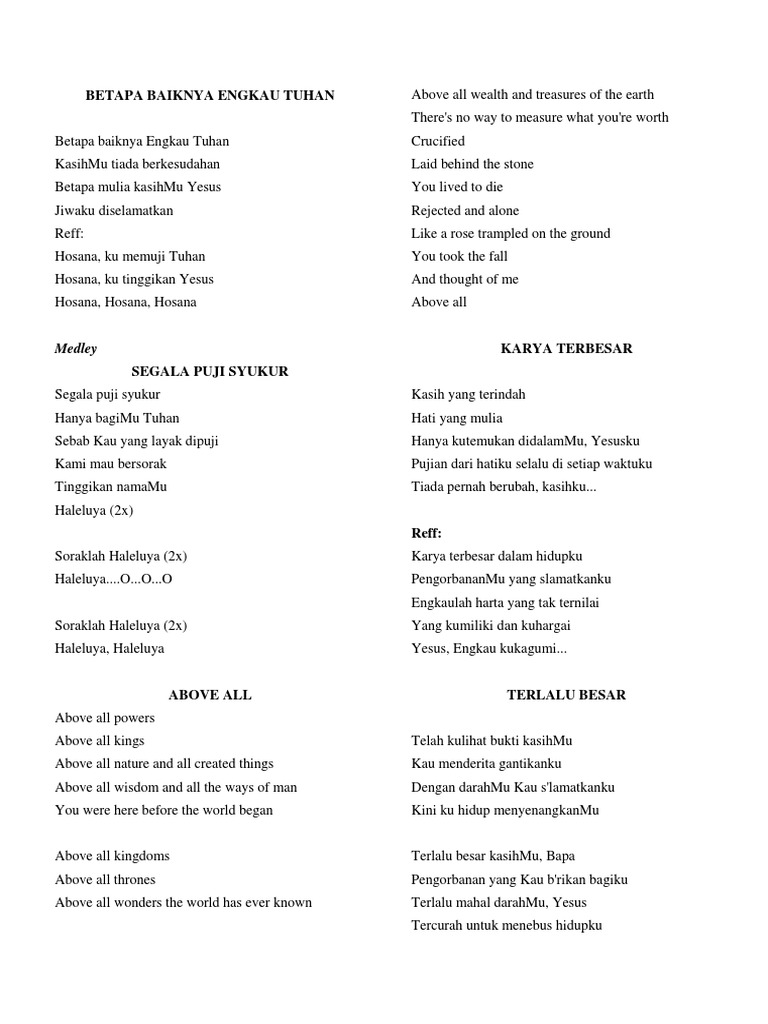 Betapa Baiknya Engkau Tuhan Lirik Lagu Rohani KristenHi Sahabat dengarlah lagu pujian Tuhan untuk menenangkan hati. Betapa Baiknya Engkau Tuhan Pdf Yang menderita sengsara dalam pemerintahan Pontius Pilatus disalibkan wafat dan dimakamkan. Terima kasihSemoga Tuhan member.